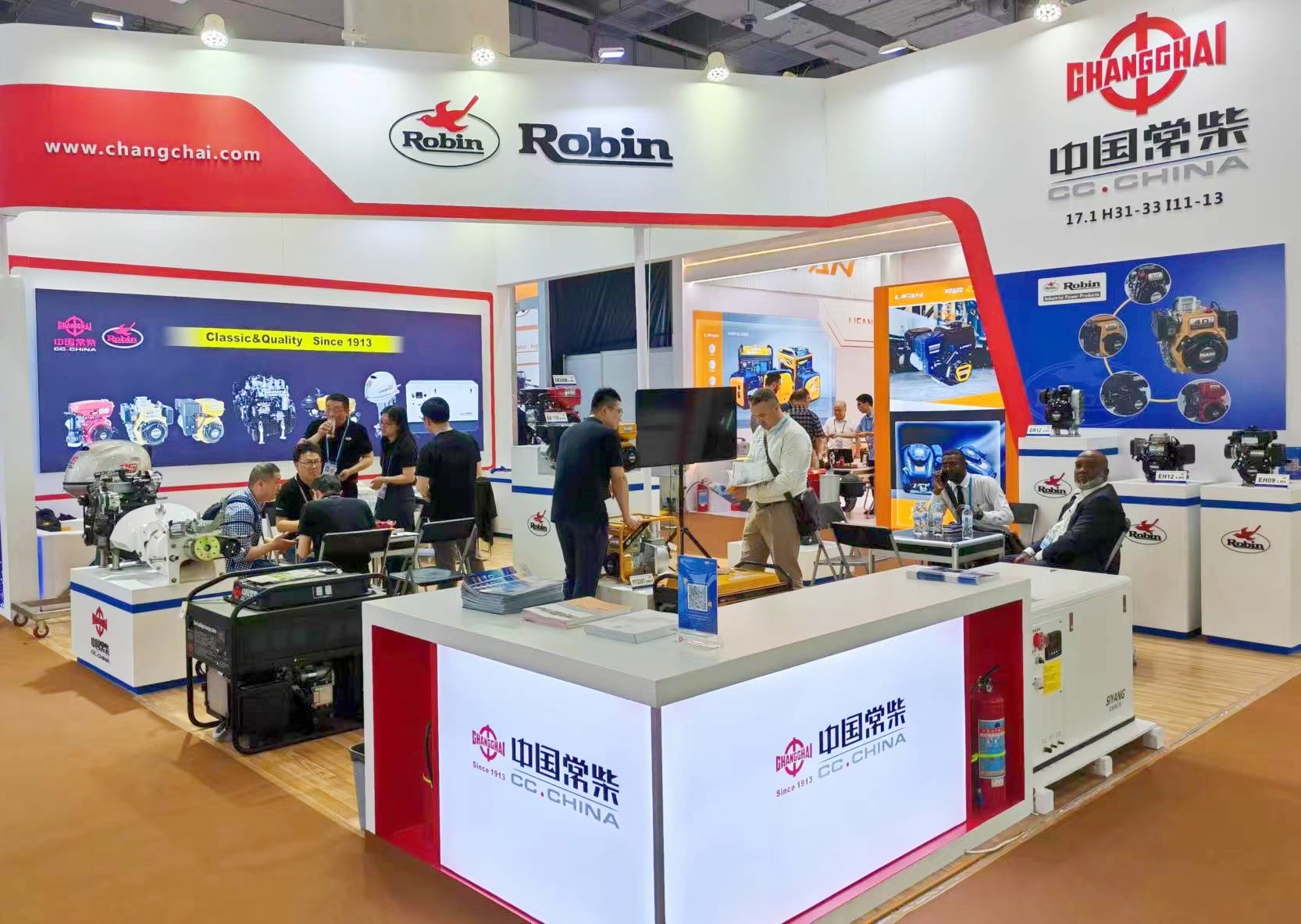 在展会现场,公司的双品牌产品吸引了大批海内外客商驻足观看交流。在常柴品牌方面,许多客商纷纷表示了对舷外机、智能发电机组等产品的兴趣,并与业务员进行了沟通,表达了进一步深入了解的意愿;在罗宾品牌方面,专为冲击夯研发设计的ER12等新品吸引了来自世界各地客户的高度关注,罗宾汽油机凭借产品的技术前瞻性和国际竞争力,得到了广大客商的一致认可。